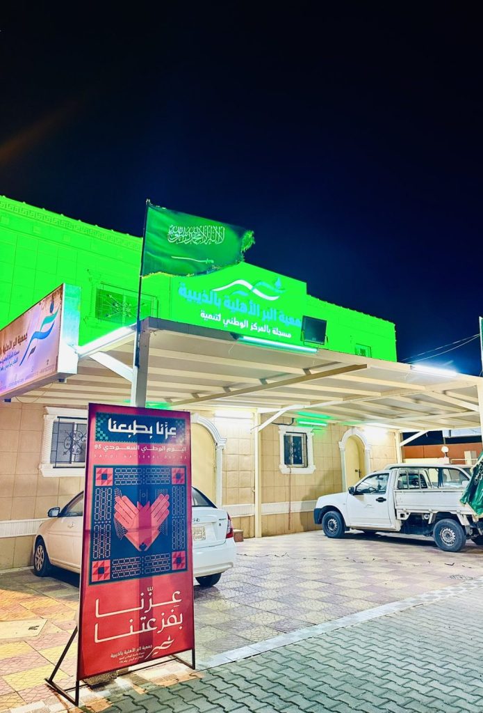 لـ mm1318ff | 24/09/2025 | الاخبار | | 47 المشاهدات مقر جمعية البر الأهلية بالذيبية يكتسي باللون الأخضر احتفالاً بمناسبة اليوم الوطني الـ 95 mm1318ff